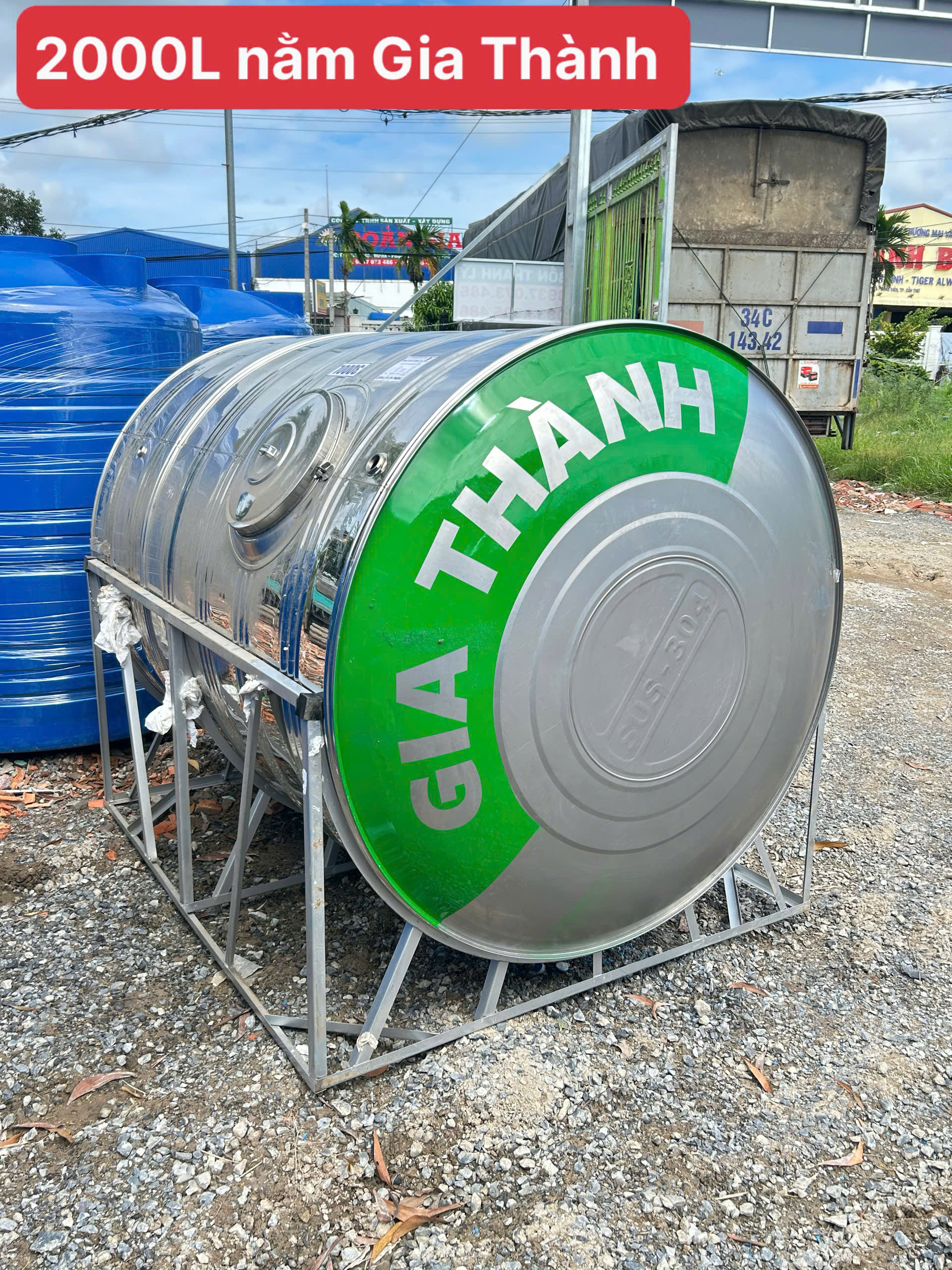 - Tên sản phẩm: Bồn inox 2000L nằm ngang